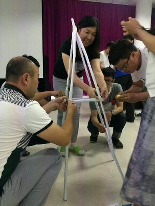 “合力造榙”活動(dòng)是各個(gè)團(tuán)隊(duì)要用有限的資源(A4紙、小膠帶、剪刀等)在規(guī)定的時(shí)間內(nèi),建造一座擁有四個(gè)側(cè)面堅(jiān)固且美觀的高塔。以符合要求的塔中最高者為勝。此活動(dòng)看起來(lái)簡(jiǎn)單,但對(duì)團(tuán)隊(duì)的組織、協(xié)調(diào)、執(zhí)行等能力有非常高的要求。是一個(gè)非常有趣且有意義的活動(dòng)。