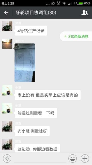 在牙輪鉆項目組微信工作群中,各個崗位高效率協(xié)同開展工作。