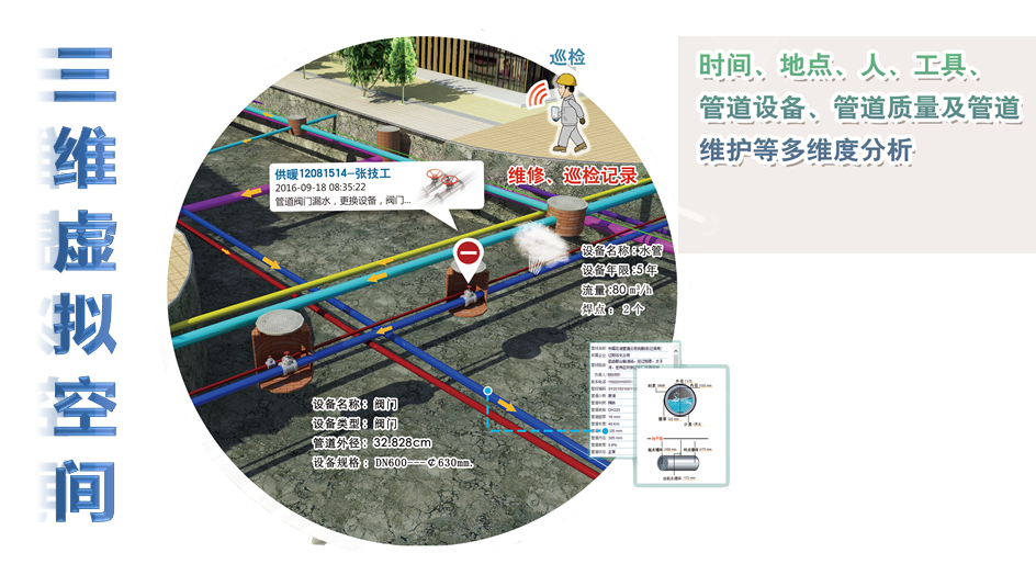 ■ 三維虛擬空間描述全信息:真實(shí)展現(xiàn)管網(wǎng)分布,直觀體現(xiàn)地下管網(wǎng)相互之間在地面及地下的立體關(guān)系;多方位,多視角查看管線的地理關(guān)系。